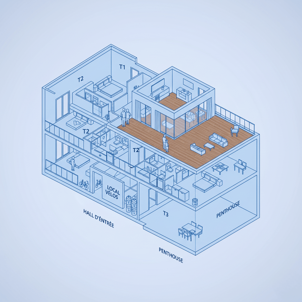 Offrent une représentation claire et intuitive d’un bien. Ils facilitent la compréhension des volumes, des circulations et des proportions.